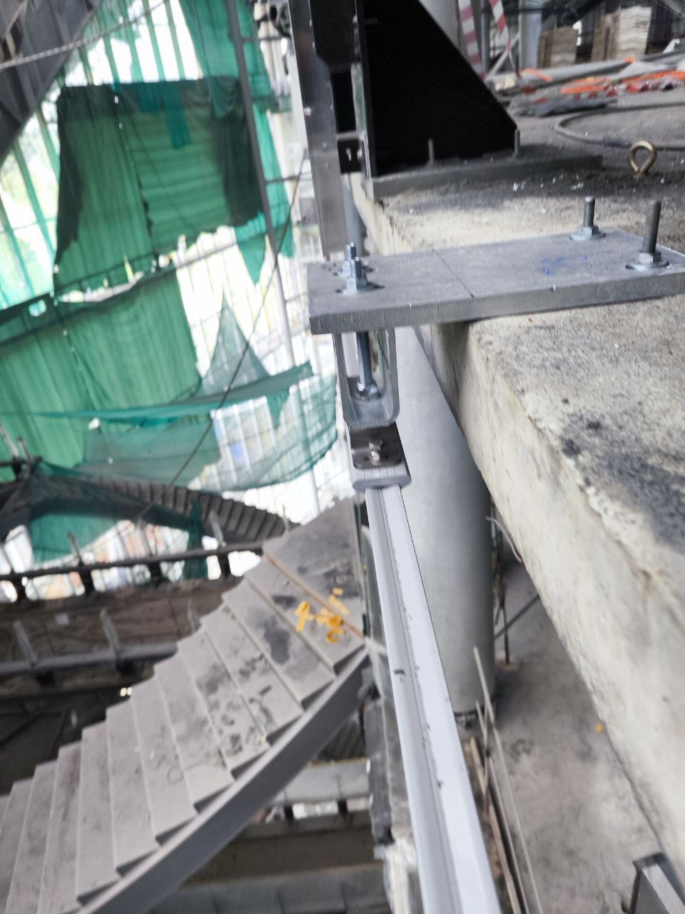 Для гарантии безупречного соответствия проектной документации разметка под анкерные крепления на объекте выполнялась с применением геодезического оборудования. Это позволило обеспечить максимальную точность и надежность будущей системы, что критически важно для безопасности высотных работ.
